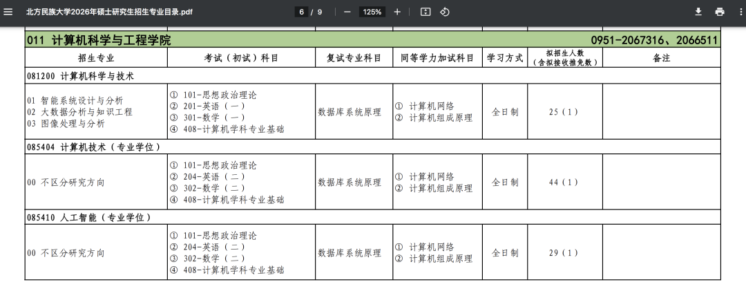 1.北方民族大学,2026年硕士专业目录发布,计算机全面改考408.