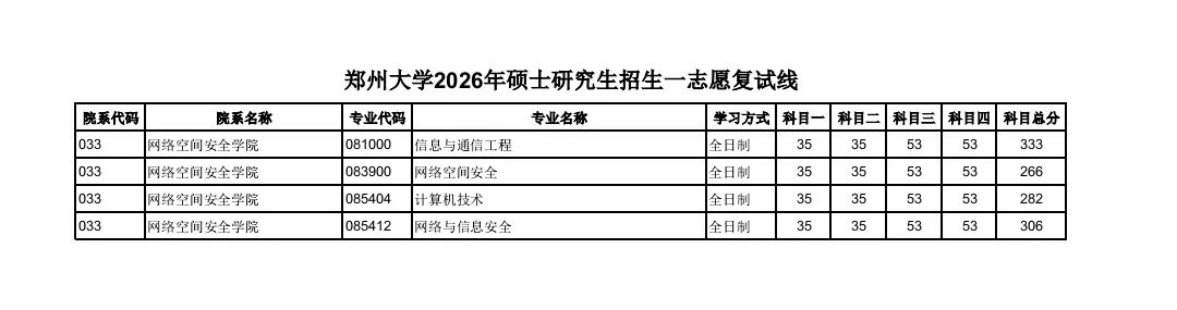 ✅ 网络空间安全学院 083900 网络空间安全(学硕) 复试线仅266分,单科线国家线水平。