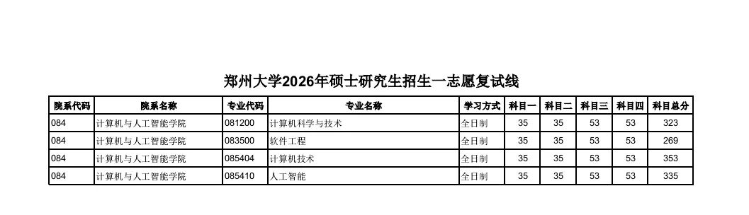 郑州大学2026计算机考研复试线公布 仅282?